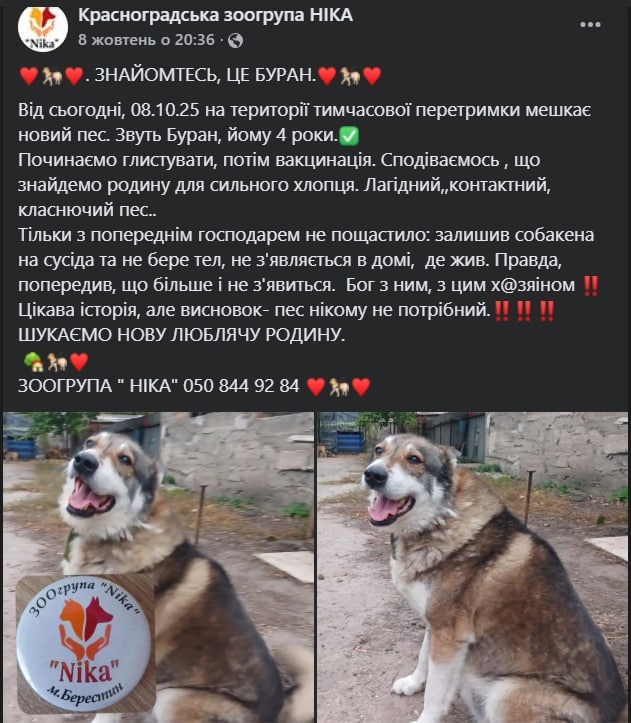 Зоогрупа «Ніка» щиро дякує міській раді за посильну підтримку нашої діяльності. Безперечно, кроки зроблені: у Берестині діє «Програма регулювання чисельності безпритульних тварин в Красноградській територіальній громаді», розробляються правила утримання тварин, де враховані місцеві особливості та потреби. Зоогрупі «Ніка» надано територію під тимчасову перетримку безхатніх тварин.